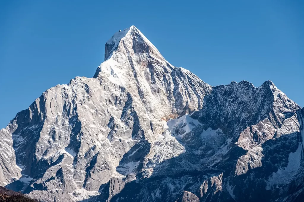 There are no trees; some mountain peaks are too high for trees.